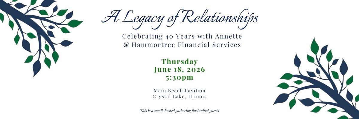 As part of the evening, we will be sharing reflections that highlight the relationships built over the years. If you would like to share a brief thought or message for Annette, our team would be happy to include it. If you would like to share a message, please reach out to Kaitlin at Kaitlin.Zimmerman@hammortreefinancial.com.